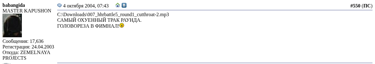 Пятый официальный баттл Hip-HopRu_ Ссылки отборочного раунда - Страница 22 - Hip
